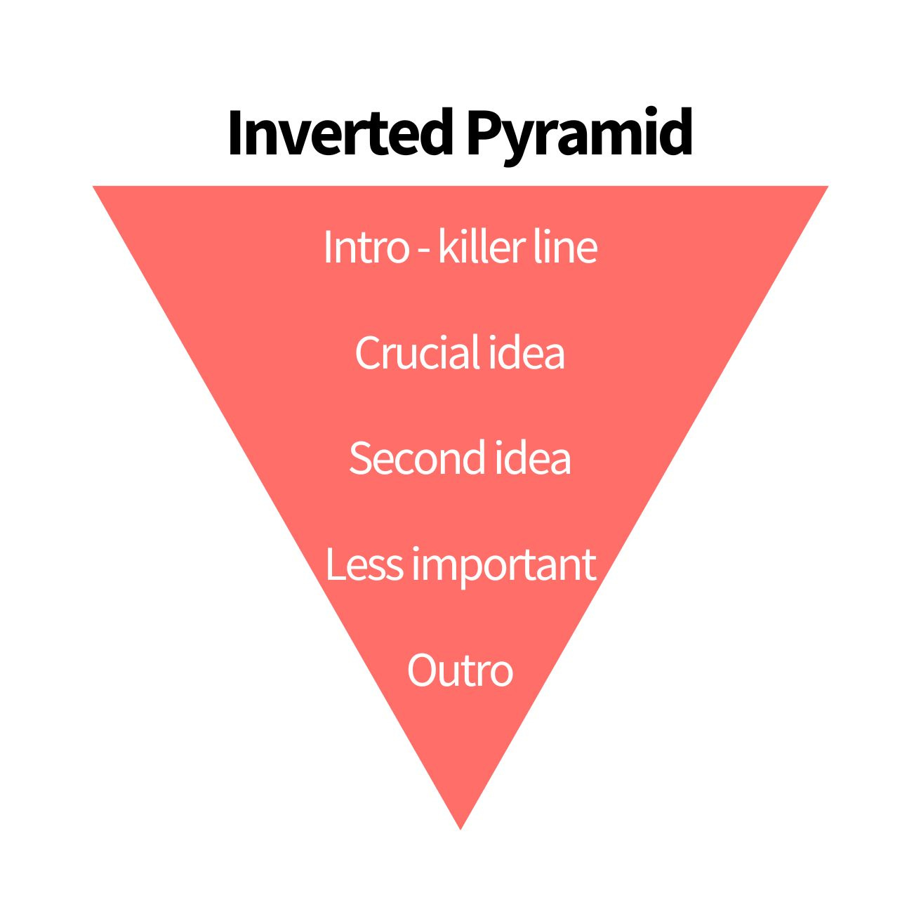 This is similar to many writing in American newspapers early 20th century, called the inverted pyramid method of writing, which was introduced in stories, press releases, short research, articles, and other writing. Here’s what the inverted pyramid looks like, broadly:
