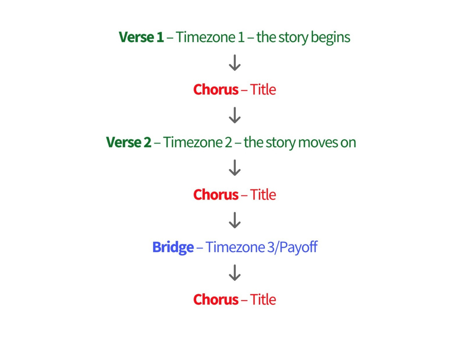 Bridge: This section often provides a moment of reflection, a shift in perspective, or even develops the payoff from the plot. Pyramiding can be used here to start with a narrow focus and then broaden the idea, leading to a powerful return to the chorus.