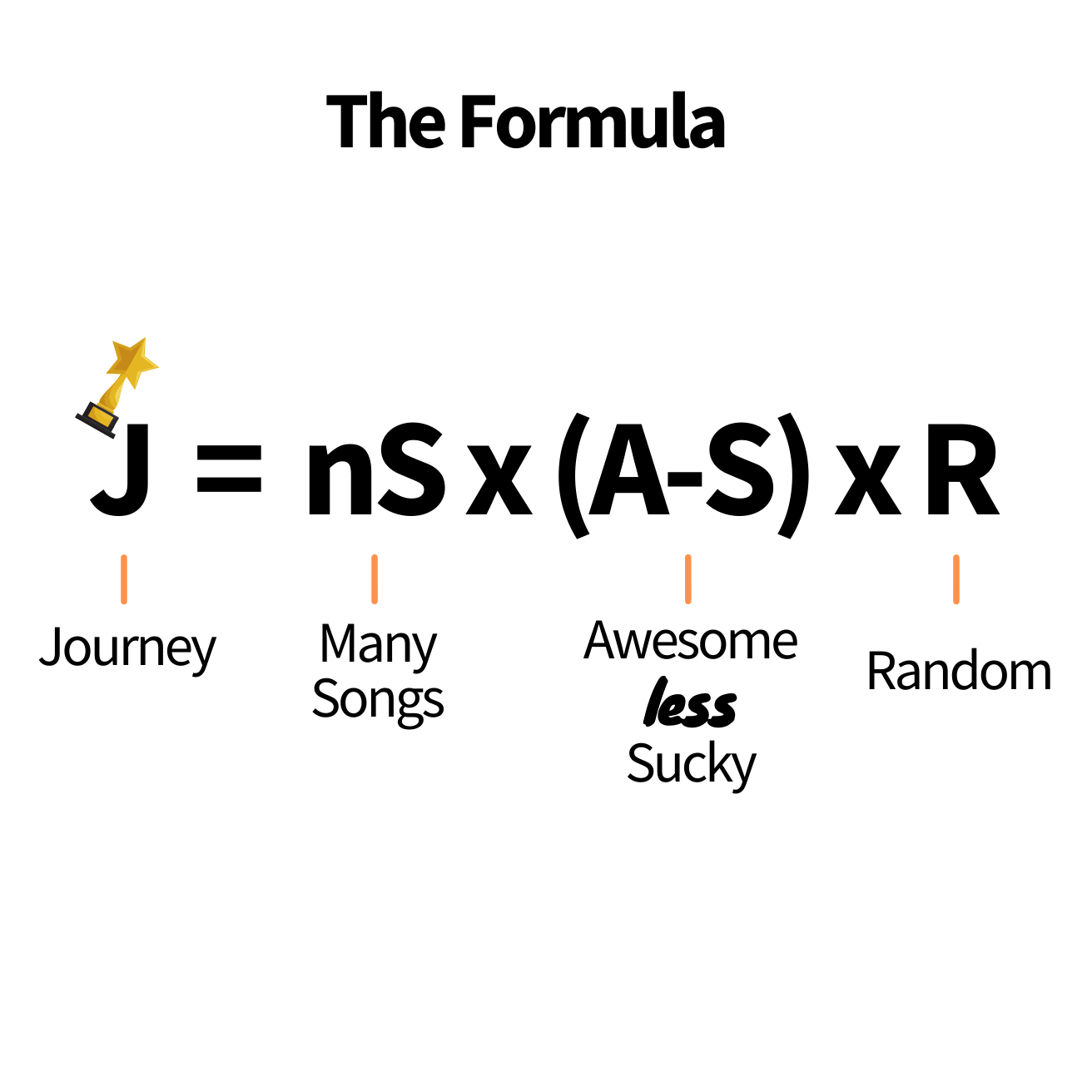 The factor you’ll have the most control over as a songwriter is the value of A (awesomeness) minus S (suckyness). The more on your journey, the more awesome your songs should be getting.