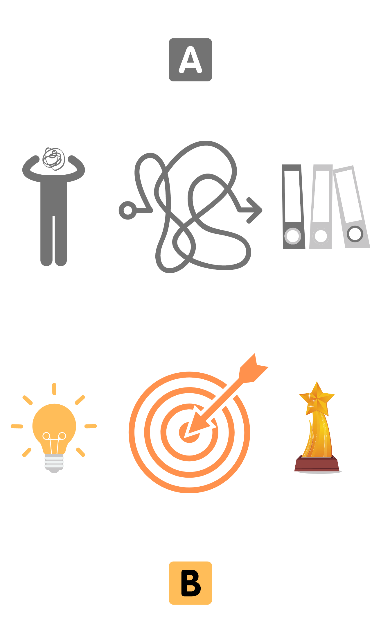 The difference between Getting Songs Written (GSW) is about putting our chaos in enough order to turn our songs into successful songs, from idea through to recognition, rather than random ideas into songs unused (in files or piles of paper – A below). It's about using the chaos in our lives, then pushing them in the right direction - the bull's eye we're trying to achieve, according to our own 'why' we write songs (B below).